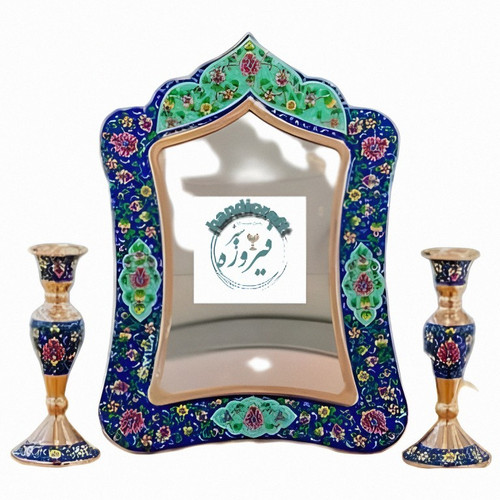 آینه مستطیل وشمعدان مس وپرداز ارتفاع۴۰