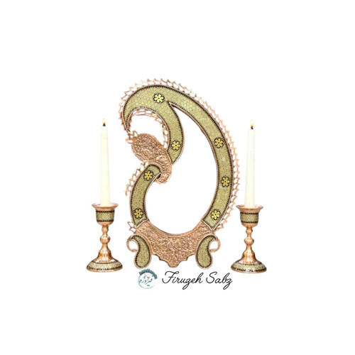 آینه مستطیل وشمعدان مس وپرداز ارتفاع۴۰